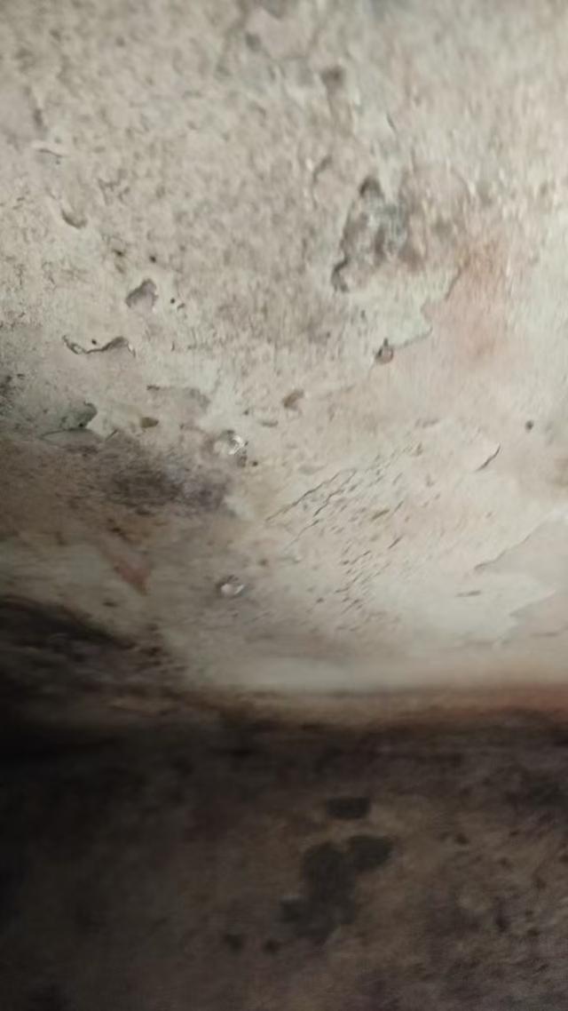 走进张阿婆家,卫生间景象令人揪心:马桶上方天花板水渍斑驳,不时有水滴坠落,下方接水的塑料托盘几乎盛满。张阿婆无奈道:“每天上厕所都得打伞,生怕墙皮掉下来,脏水滴到头上。”为观察漏水情况,卫生间吊顶扣板已被拆除。如今连厨房墙壁也未能幸免,墙面遍布大片霉斑。