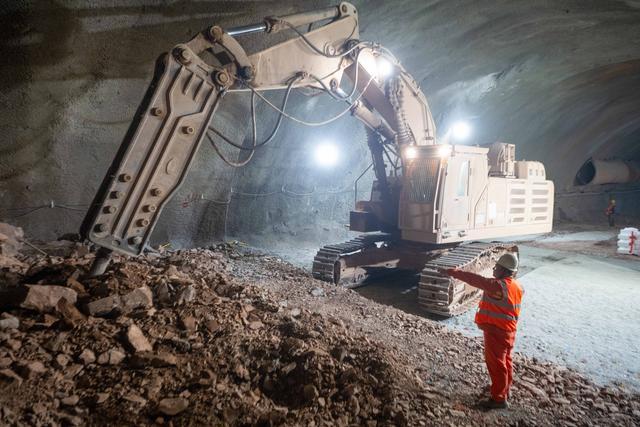 1月23日,工人指挥大型机械在成渝中线高铁人和隧道建设现场施工作业。新华社记者唐奕摄