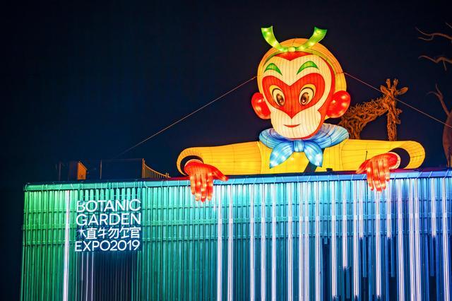 除传统花灯外,园区在植物馆与中国馆前设置了多处科技光影秀,通过动态灯光与投影技术,生动再现《大闹天宫》“蟠桃盛会”“大闹凌霄殿”等名场面。游客可跟随“齐天大圣”的足迹,穿梭于虚实交融的光影叙事中。