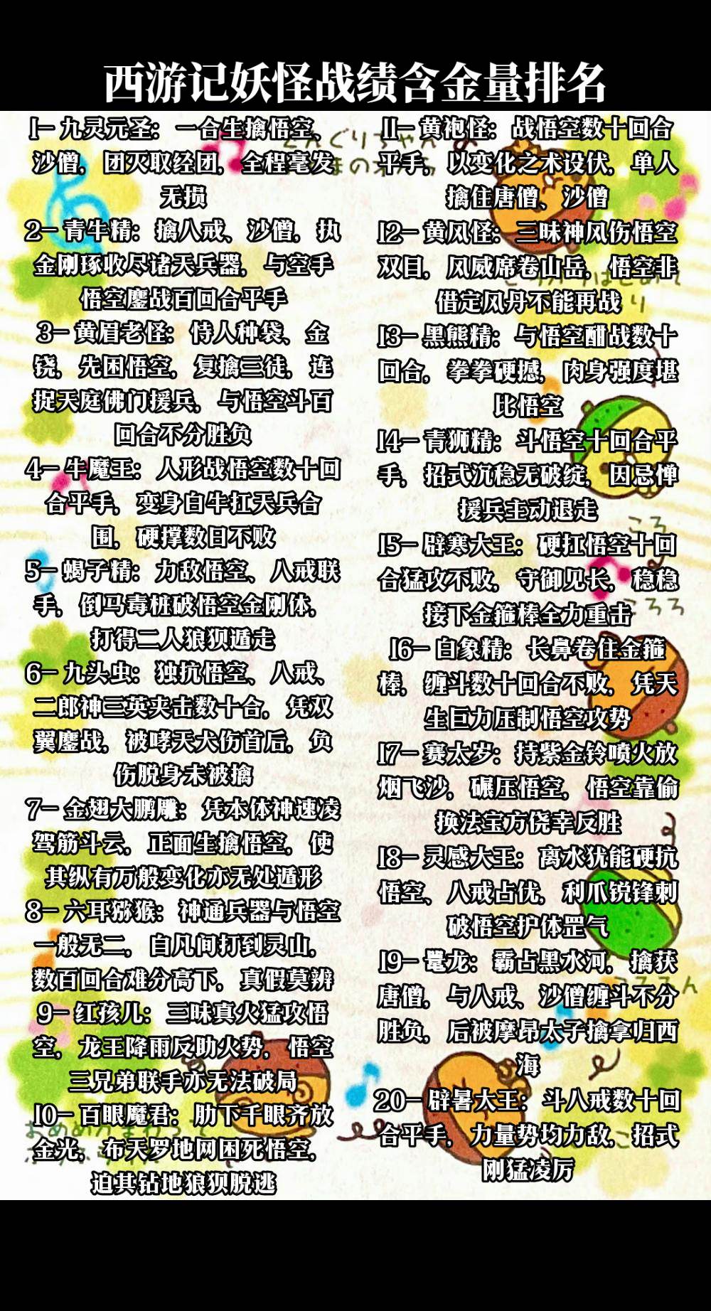西游记原著妖怪战绩含金量排名前36位西游记西游记妖怪西游记妖怪实力西游记妖怪战绩