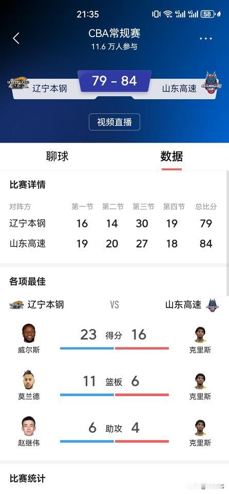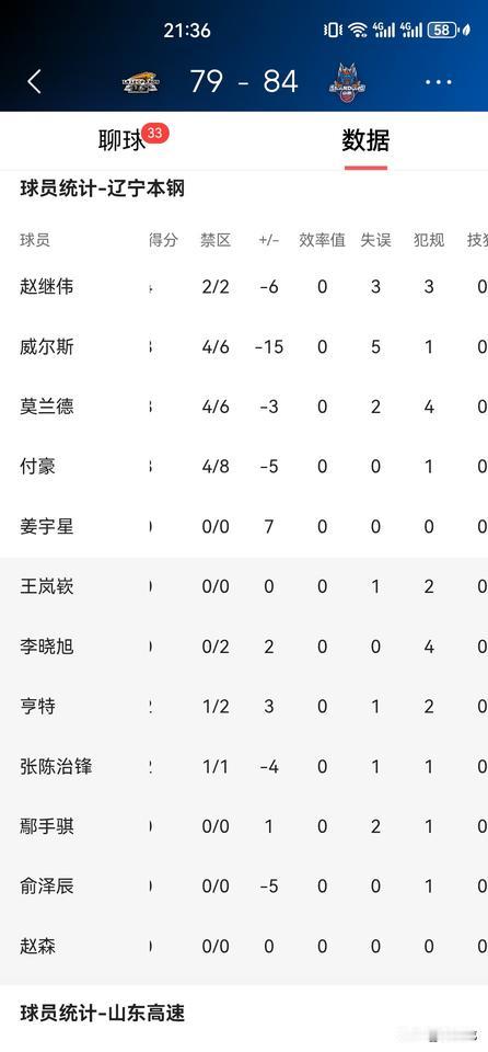 辽宁最后2分39秒一分未得,拱手让出胜利! 辽宁主场79:84憾败山东,最近6场比赛输掉5场,赵继伟复出也未能止住球队继续下滑颓势。 本场比赛,辽宁队一直处于落后状态,直至进行到最后时刻,赵继伟连投带罚连拿到6分,李晓旭两罚全中,剩下2分39秒,辽宁队79:76反超3分。可惜的是队友连出现失误,会大好时机,最后2分39秒一分未得,拱手把胜利送给远道而来的山东队。 比输球更可怕的是,从杨鸣本场比赛在场边一反常态的安静表现,感觉已对球队现状失去信心。本场比赛得分前两位的威尔斯和赵继伟,在比赛结束后双双直接走进更衣室,丢给队友和球迷一对失落的背影……