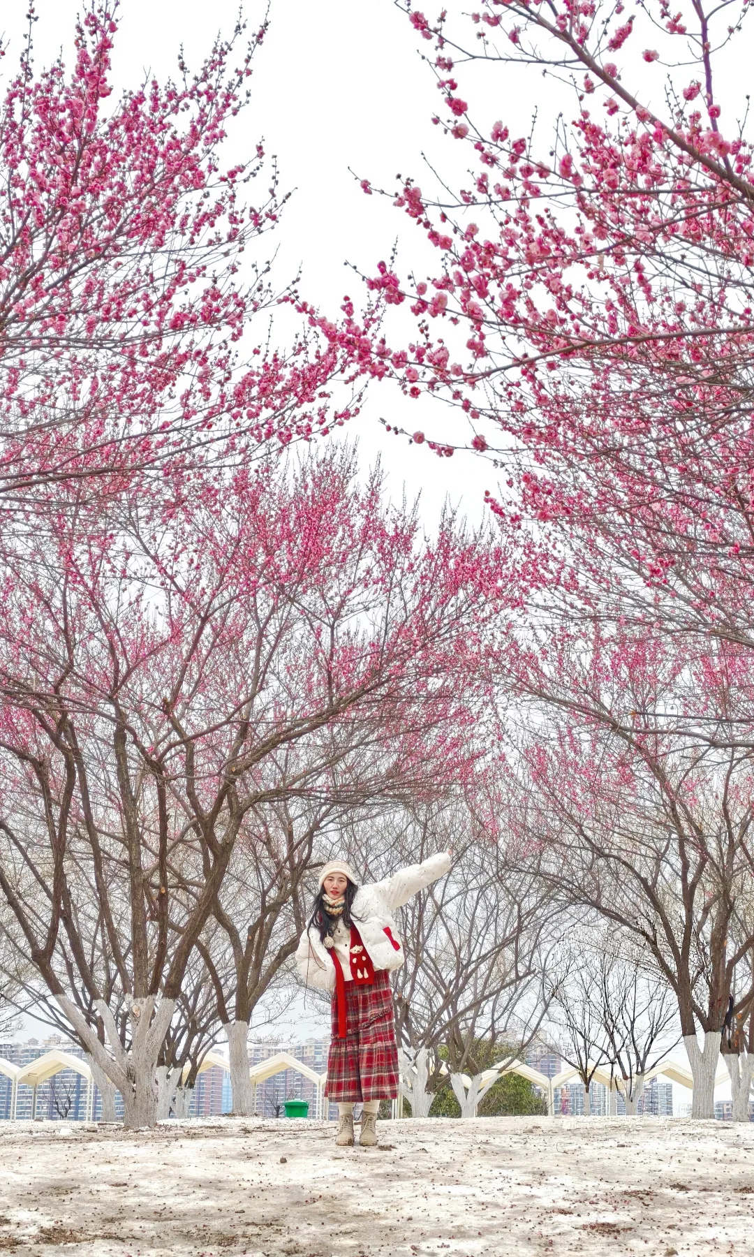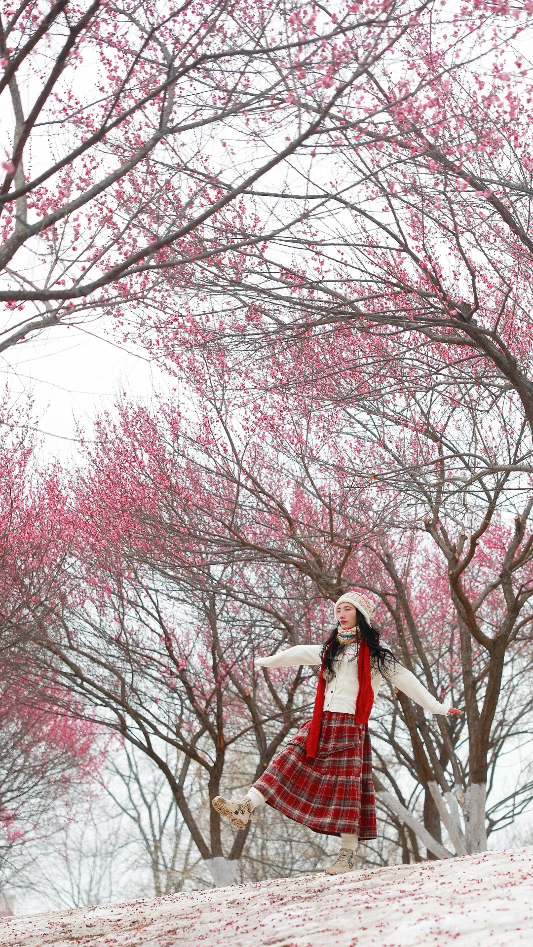 ✅ 必带折叠梯!梅花树高,站梯上拍人在花中
