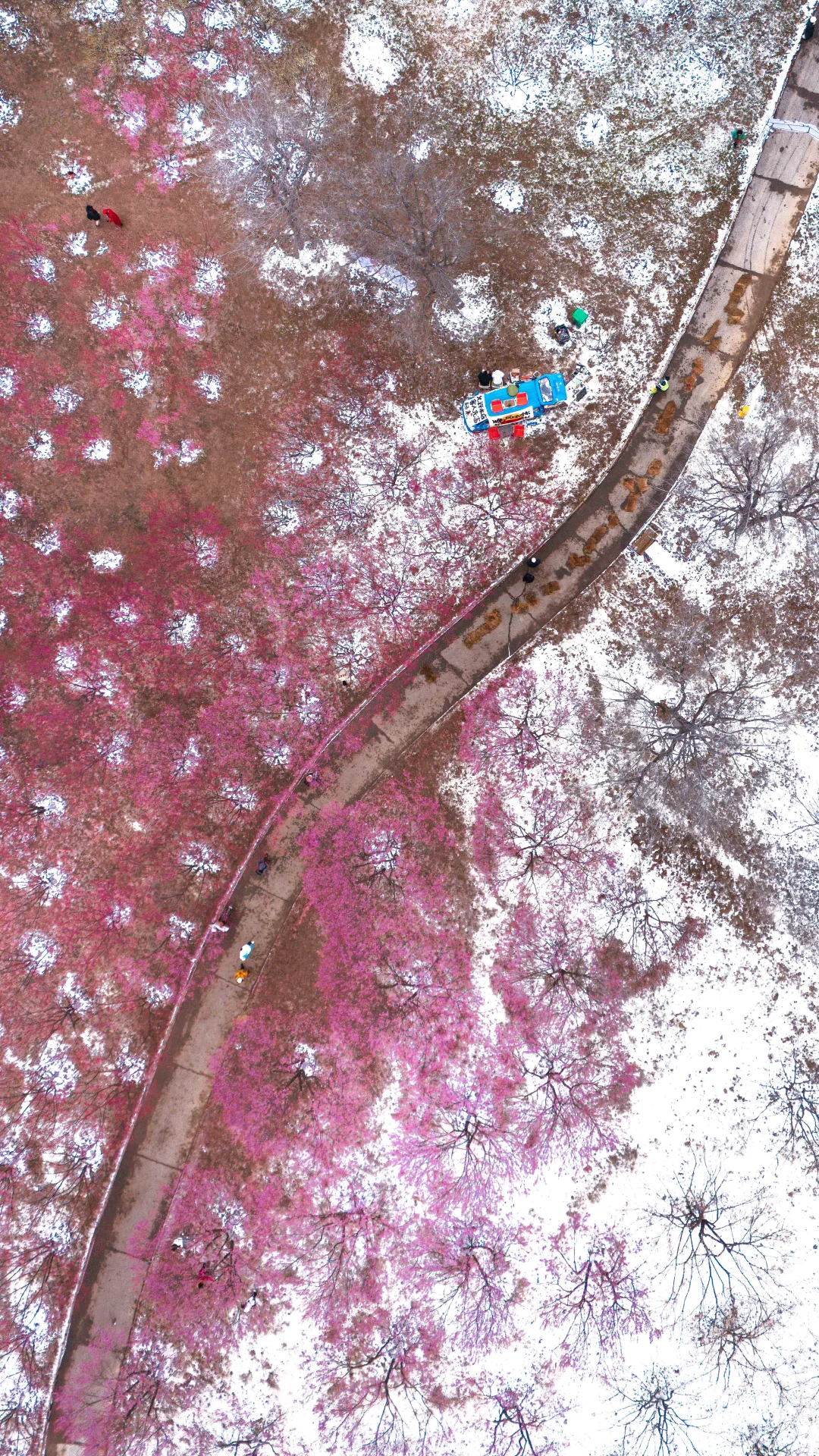 500余株红梅、白梅、宫粉梅开成粉色云霞,