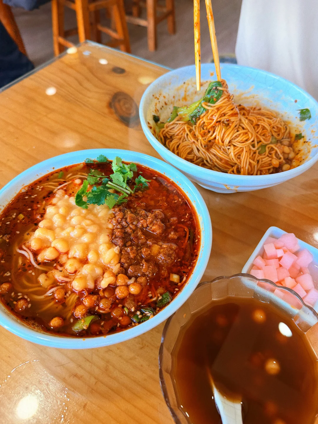 威海打工人一定不能错过这家重庆小面!就在山大附近,利群商圈内,距离金海滩很近,在附近的姐妹们都可以冲! 碳水脑袋的天堂! 喜欢干拌面的姐妹一定不要错过碗杂拌面🍝,微辣版本,碗杂给的满满当当,干拌吃真的很香! 我更爱汤面🍜,吃的碗杂汤面,汤汁和碗杂挂在面上,一口好满足! 夏天我会配红豆冰粉,冬天一定要配上红糖汤圆!