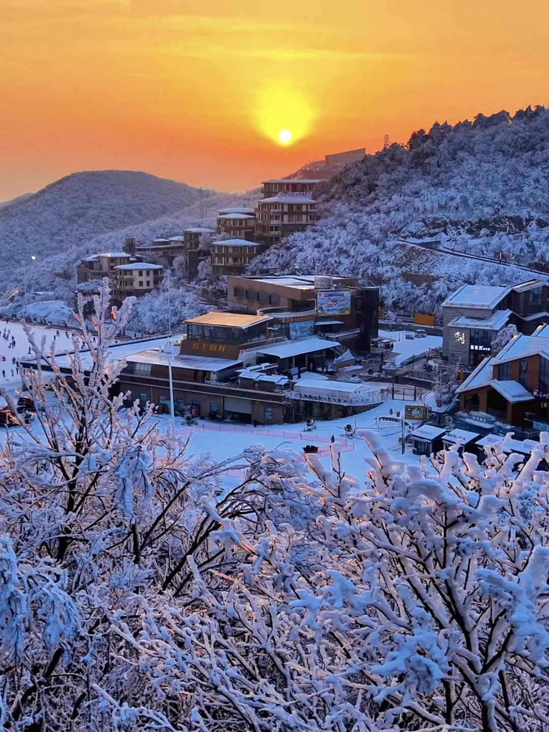 1.22实拍❗️❗️安吉的日落雾凇杀疯啦🥹🥹