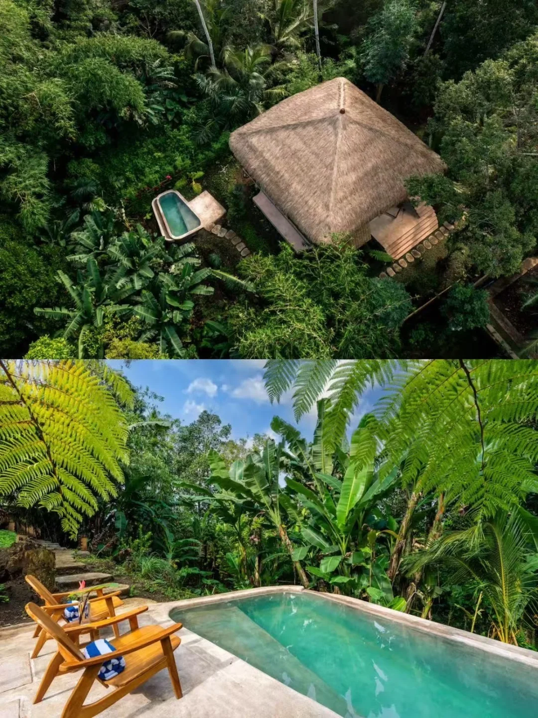 民宿在乌布,周围被大片的稻田和热带雨林🌴所包围,Villa🌼是一栋巴厘岛传统树屋,共有3间卧室,最多可以住6人,每一间卧室都有独立卫生间和露台