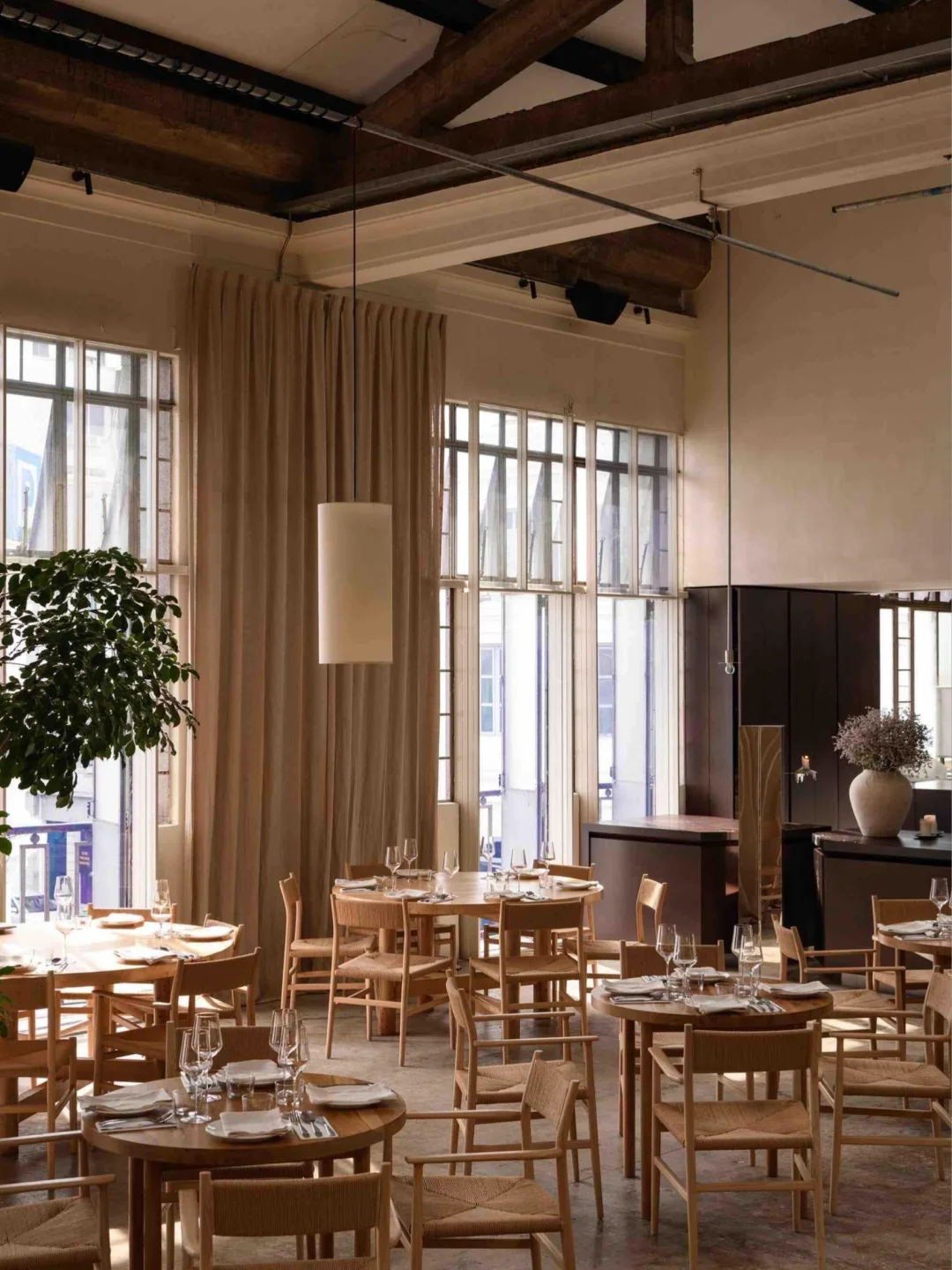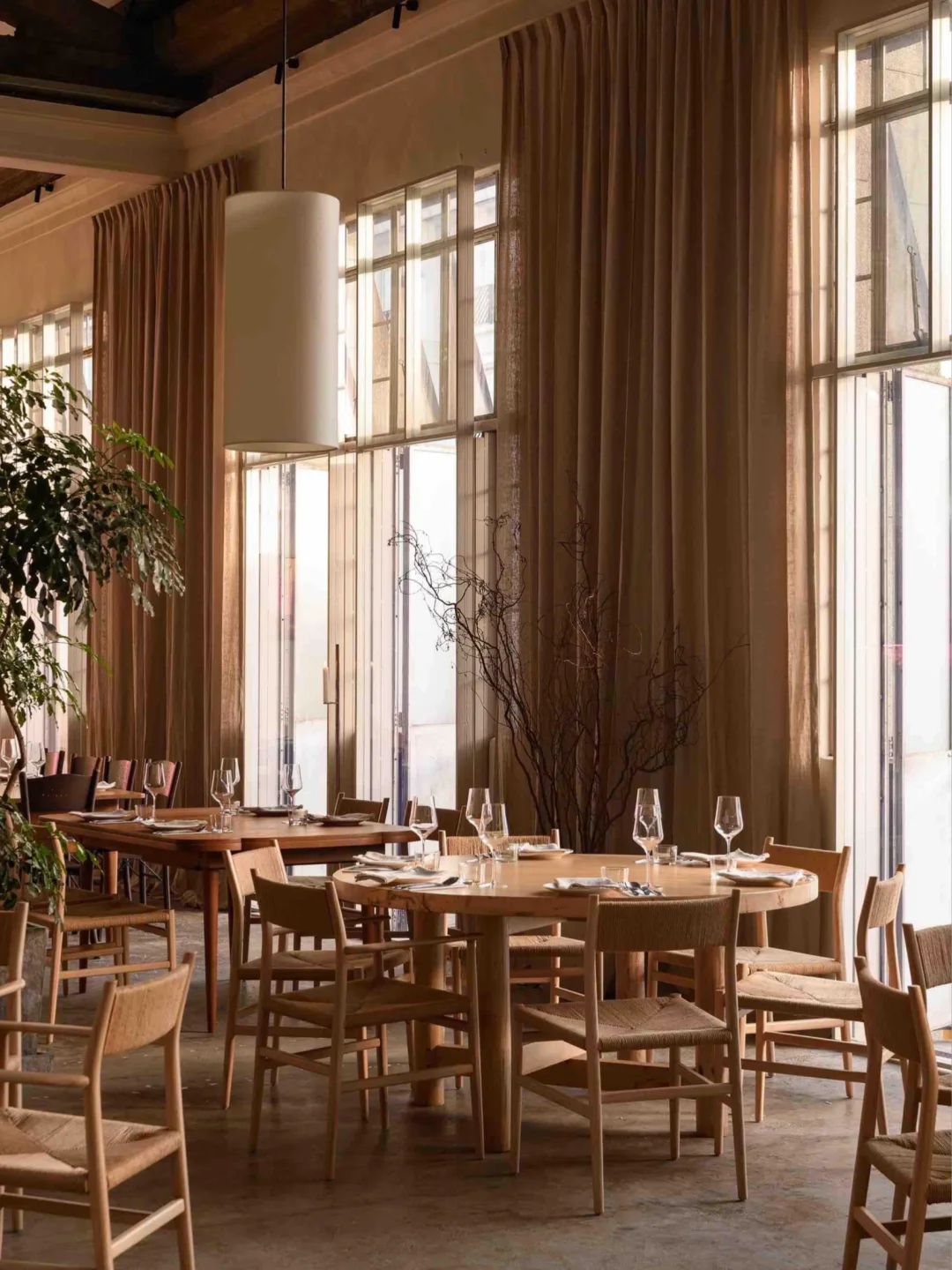 ·里面空间特别大,天花板高高的,木调自然系装饰,很有品味