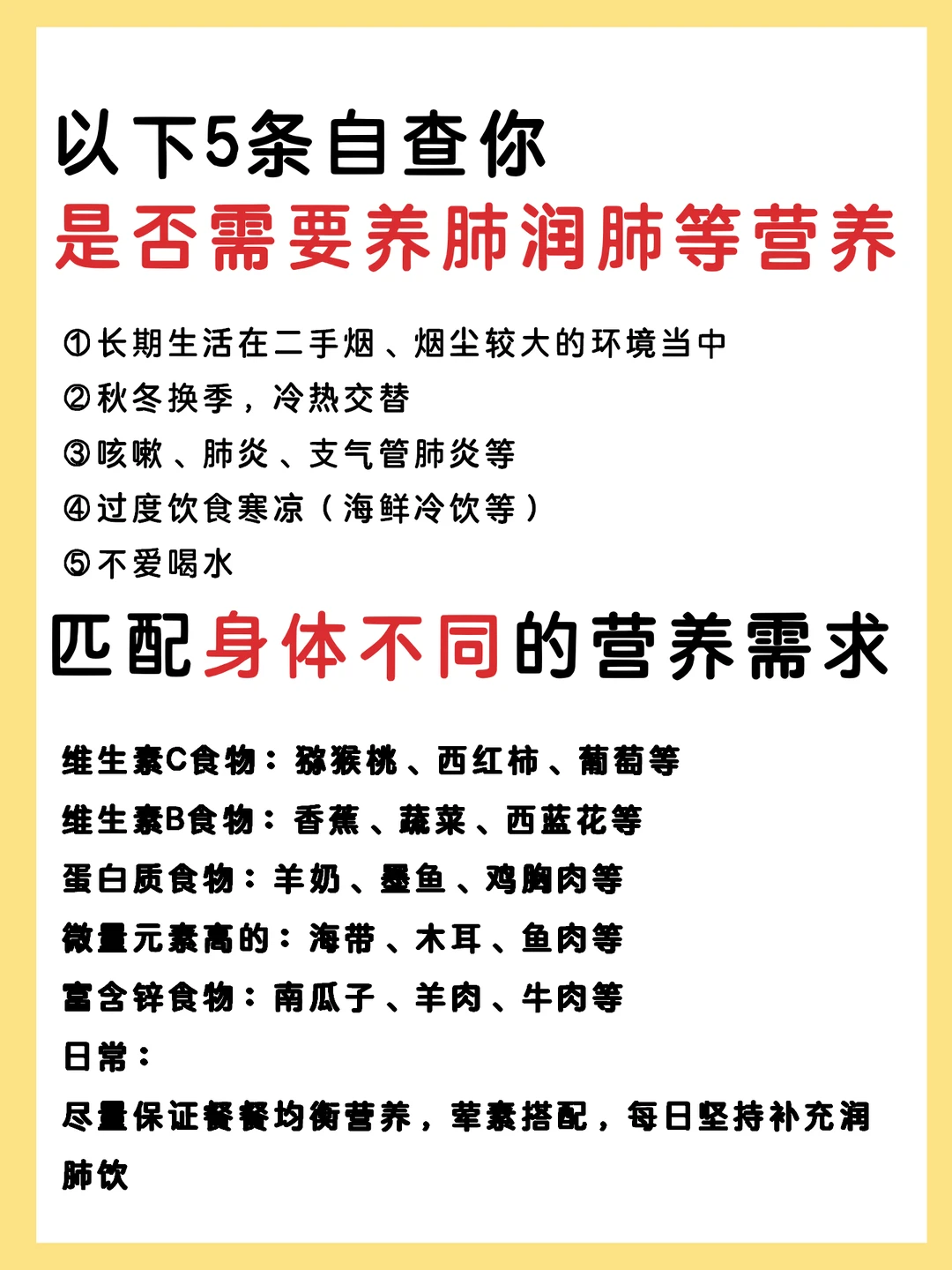 尽量保证餐餐均衡营养,荤素搭配,每日坚持补充润肺饮