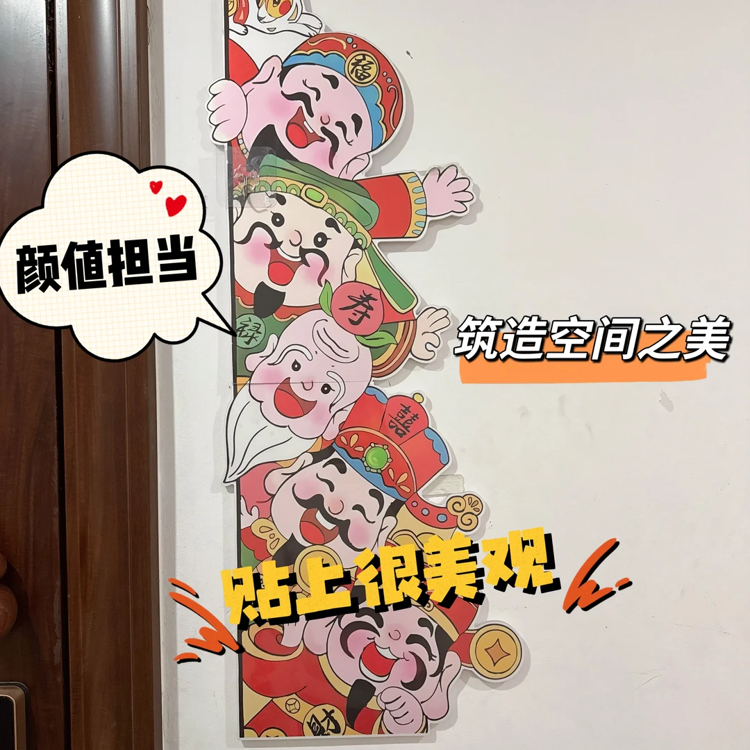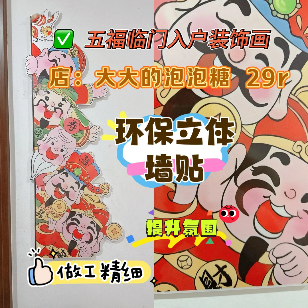 最后,我用的“五福临门”装饰画点缀墙面。环保立体墙贴做工精细,不仅是颜值担当,更让原本单调的白墙有了视觉焦点与美好寓意,真正筑起了入门的第一道风景。五福临门的寓意更是绝绝子!
