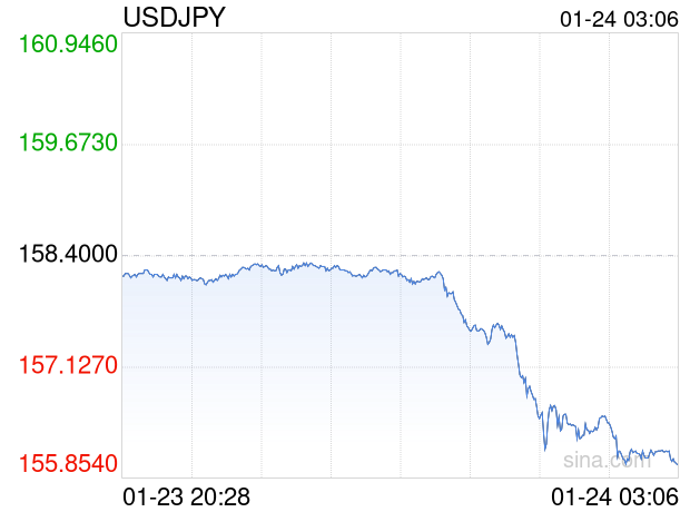 新浪外汇消息2026年01月24日,截至03时06分,外汇市场上美元兑日元汇率跌破1美元兑换156.0000日元。跌幅为-1.5151%
