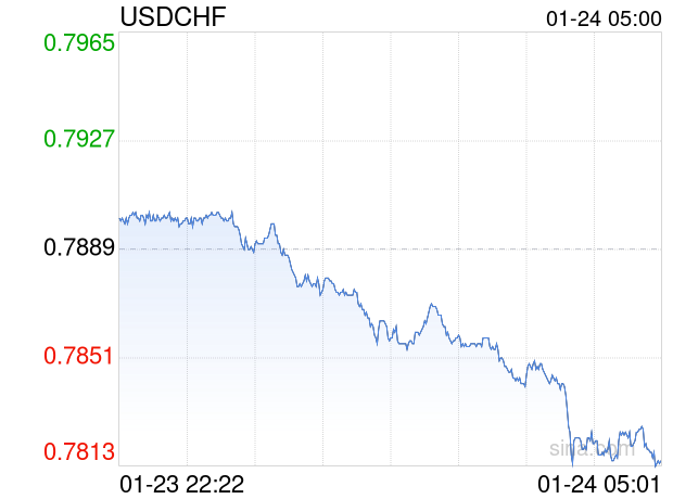 新浪外汇消息2026年01月24日,截至05时00分,外汇市场上美元兑瑞士法郎汇率跌破1美元兑换0.7814瑞士法郎。跌幅为-0.9507%