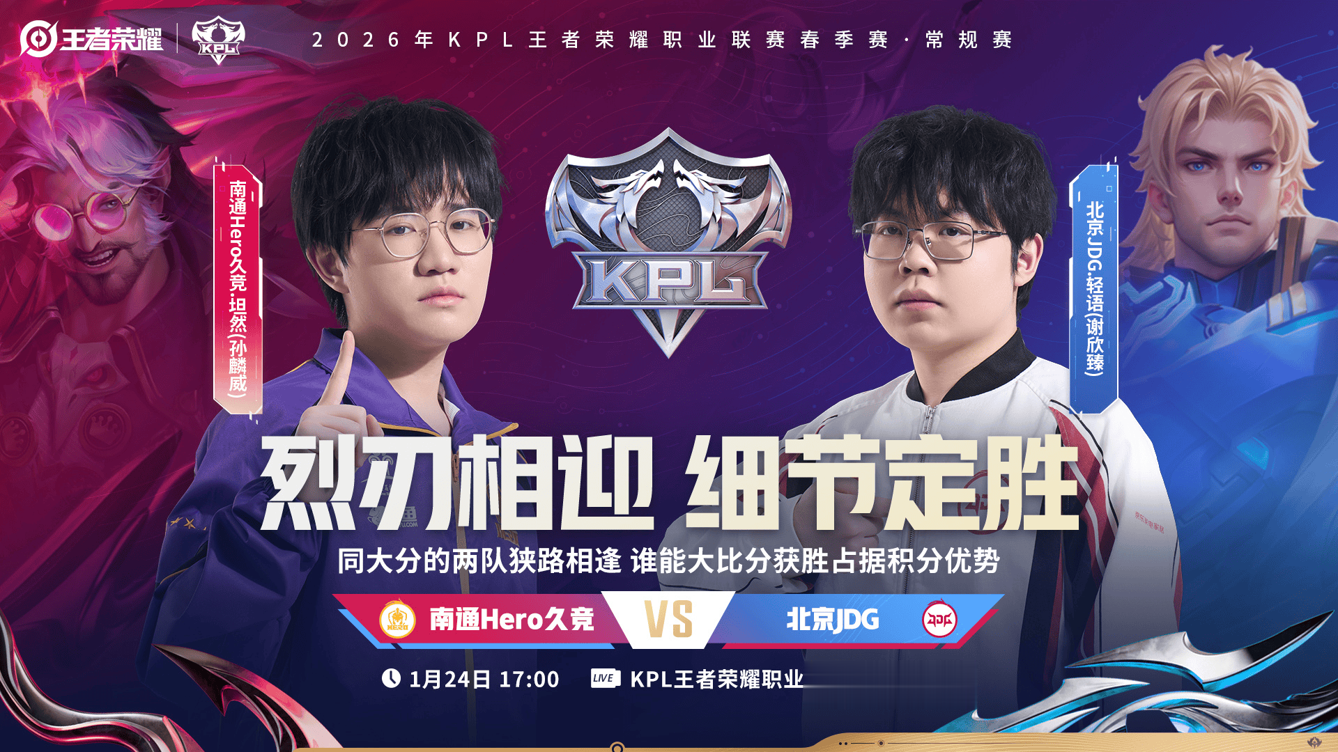 南通Hero久竞_坦然(孙麟威)与JDG清融v(黄垚钦)老队友再相遇,作为曾经的冠军五人组中唯二仍活跃在赛场上、稳定首发的选手,谁能帮助队伍拿下这场比赛的胜利?