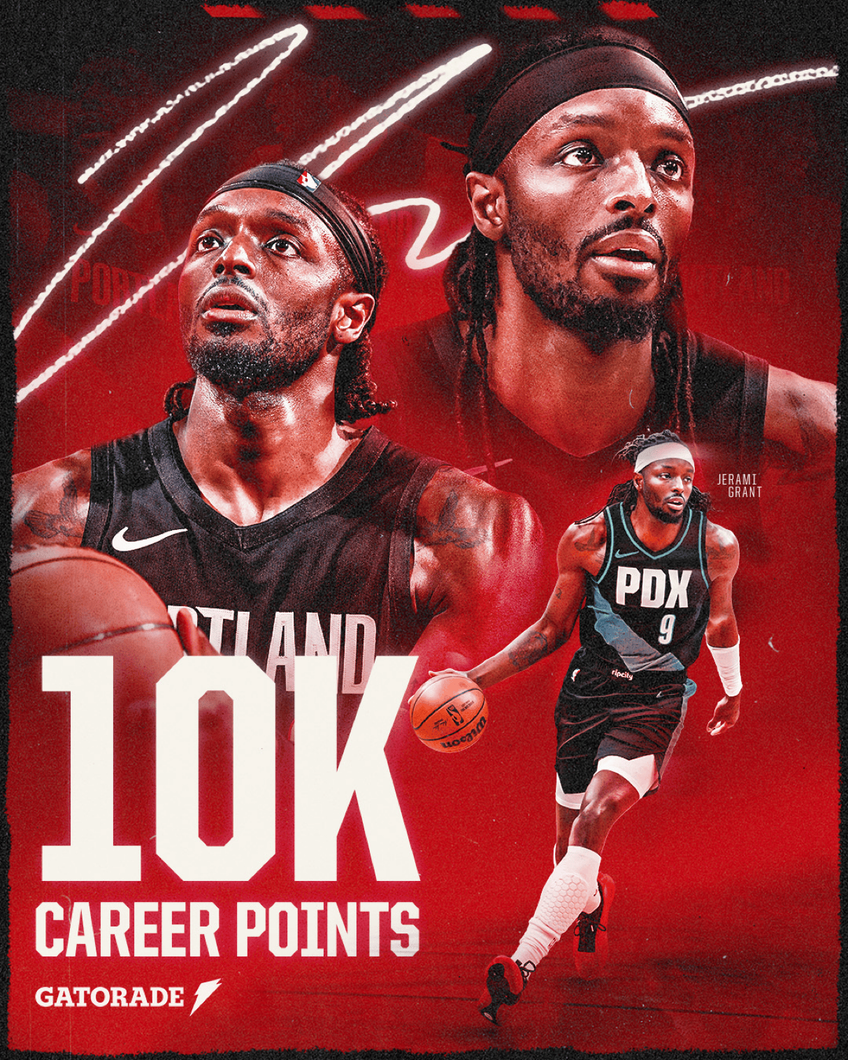 “杰拉米-格兰特职业生涯总得分突破10,000分大关。他是开拓者队史第47位达成这一里程碑的球员”,开拓者官媒附文道。