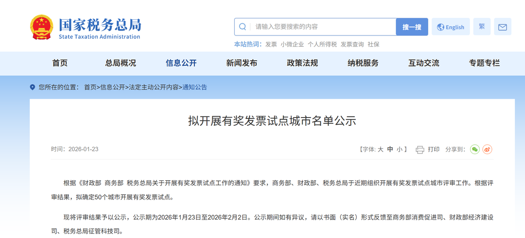 商务部消费促进司财政部经济建设司税务总局征管科技司2026年1月23日