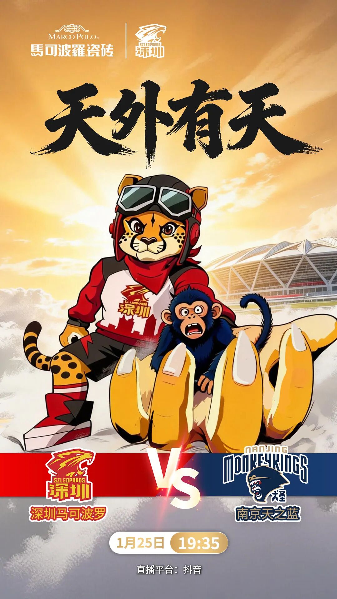 虎扑01月24日讯据深圳男篮发文,1月25日19:35,CBA常规赛第19轮,深圳马可波罗将坐镇主场迎战南京天之蓝!
