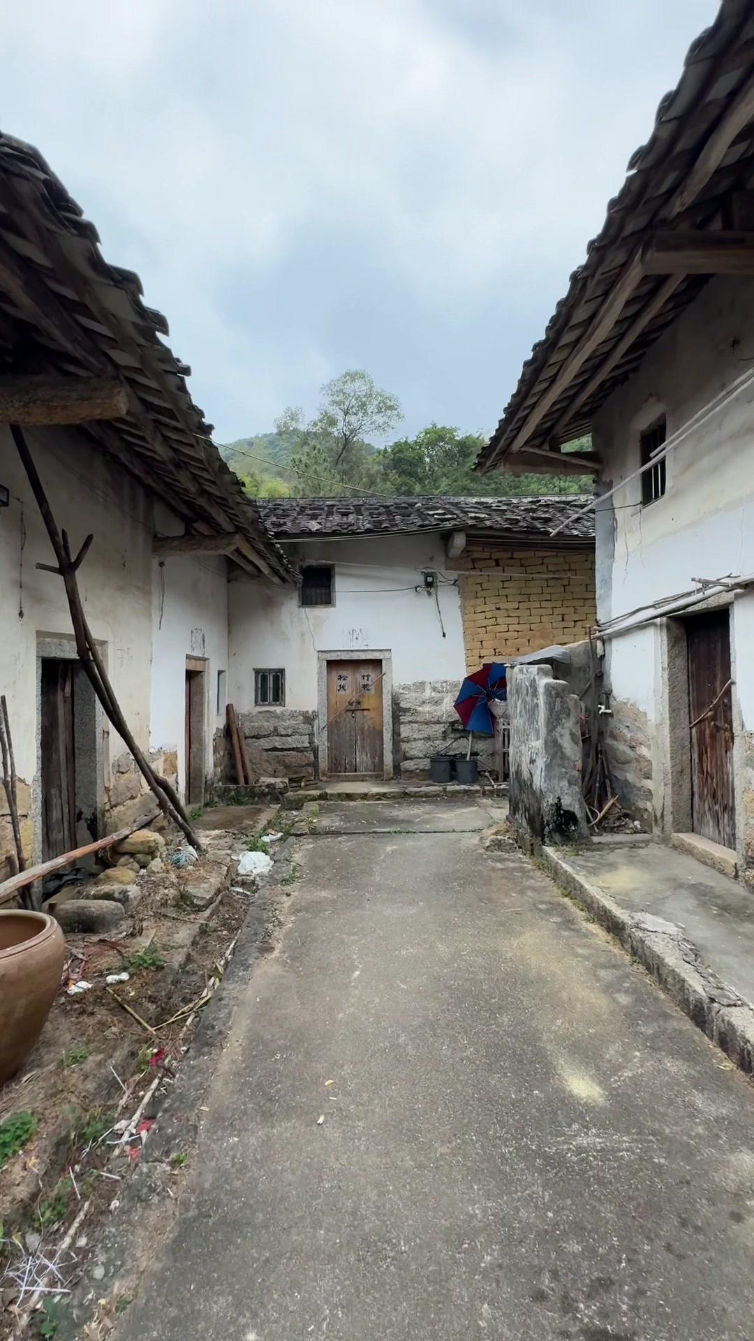 大山里的堡垒村寨!普宁潮客山区罕见聚寨而居古村落 🏞️在普宁梅林镇大山深处,藏着一座独特的堡垒式村寨——军田村庵尾。与常见的分散山村不同,这里是聚寨而居,青石板路环绕,防御型寨围清晰可见,仿佛进入另一个时空。 走进村口,路边橄榄树果实掉落一地,柑橘林也无人采摘,整座村子安静得像被时间遗忘。虽有新电表、网络信号,但家家户户门户紧闭,只有零星老人留守(户籍人口150多,现大多搬去镇上)。 最让我好奇的是建筑布局,为什么偏居深山的村落要聚寨而建?是为了防御野兽?还是有其他故事?和留守老人攀谈时,因方言不通,交流困难,只懂"人不多""以前200多人"等零星信息。 虽然没解开聚寨之谜,但记录下古寨全貌,也算不虚此行。