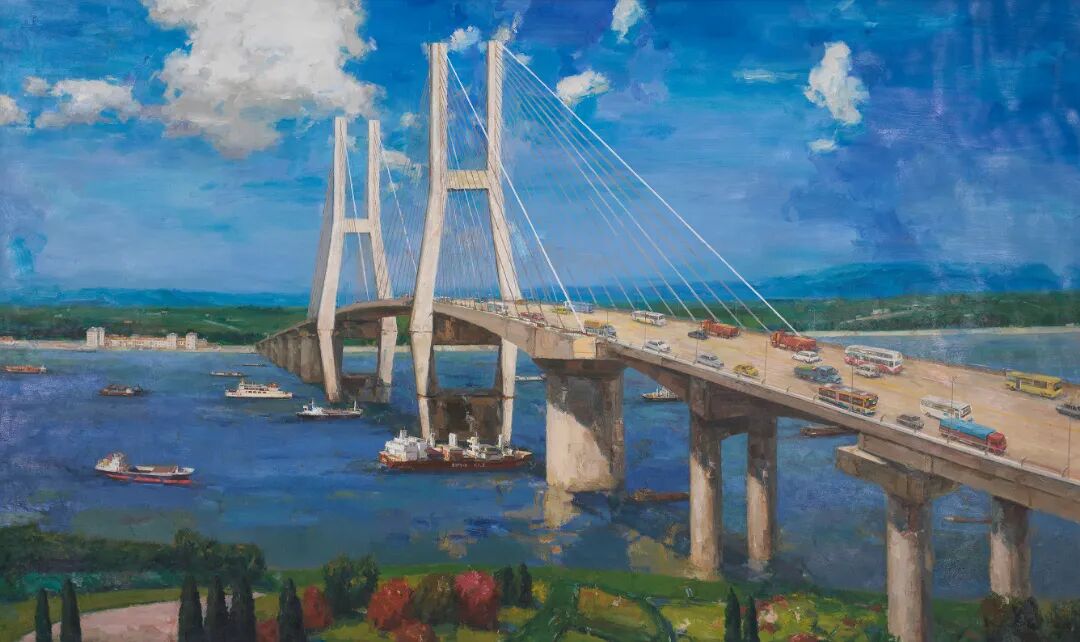 油画《皖江第一桥》(巫俊、刘玉龙安徽省美术馆供图)