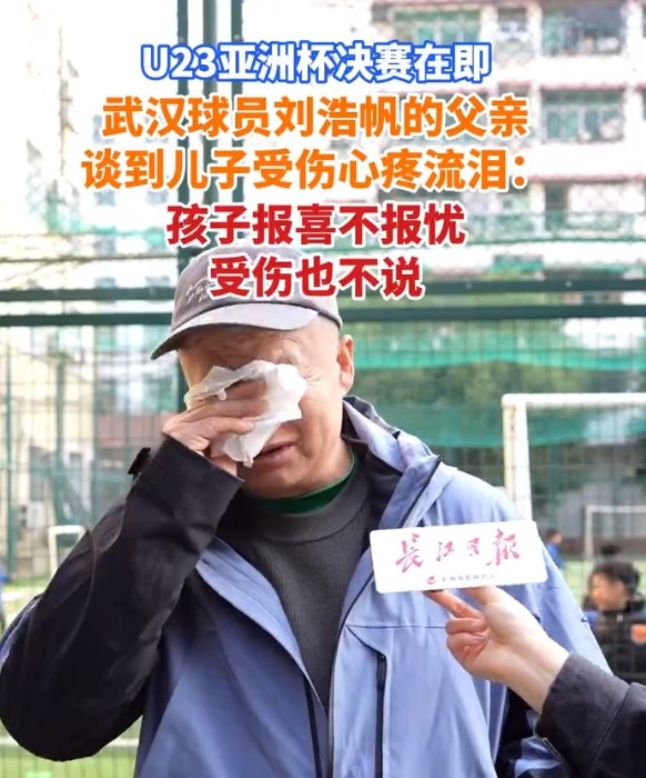直播吧1月24日讯U23亚洲杯决赛,U23国足将与日本U23队争夺冠军。据《长江日报》报道,刘浩帆的父亲谈到儿子受伤心疼流泪。