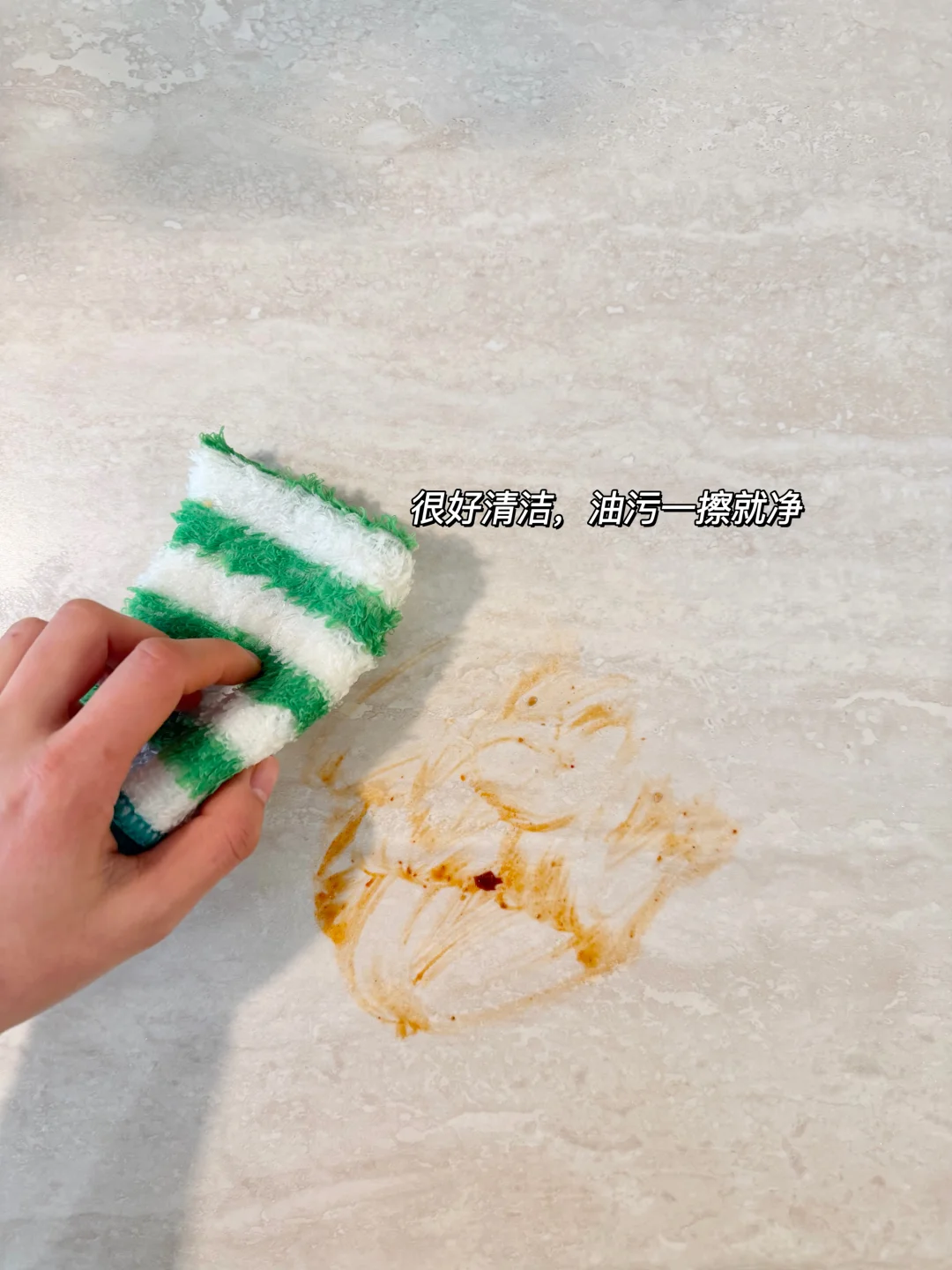 桌面是德利丰岩板,足厚12mm,搭配18mm的多层实木底板,双层板的设计,特别结实。耐磨耐刮还特别好打理,娃吃饭时洒的汤汁、油渍,拿抹布一擦就干净,完全不用费劲儿