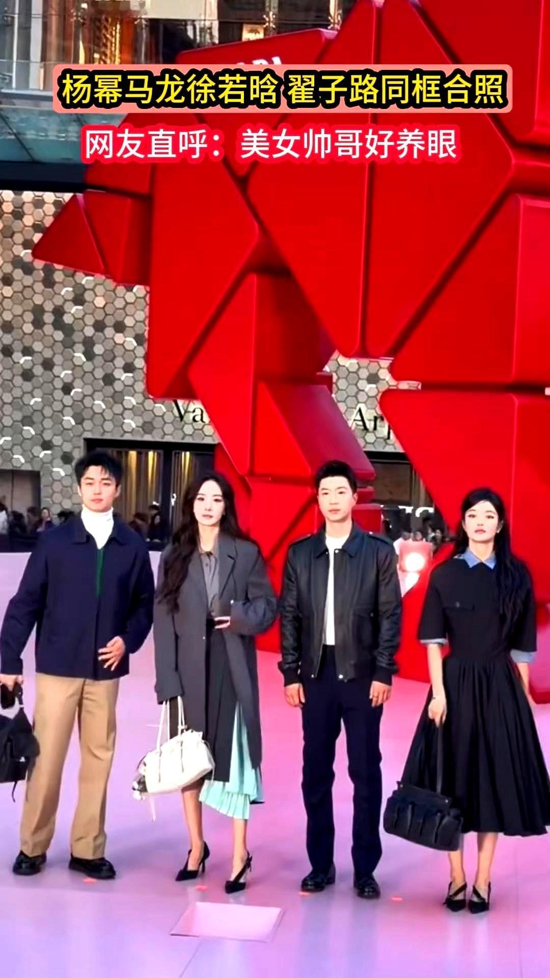 谁能想到2026开年,是杨幂和马龙刷了屏!这俩人怎么会站在一起? 上海普拉达的“赤马迎春”活动,现场就他们四位。杨幂一身黑皮衣,气场全开,生图状态简直是神。 马龙站在旁边,皮肤好到让网友惊呼,比好多男明星都顶!奥运冠军就是稳。 最绝的是那个松弛感。四个人在红色艺术马前拍完照,镜头一停,立马转身就走,干脆利落。 就这么几张合照,话题阅读量直接干到2亿!全网都在喊“美女帅哥好养眼”。 这已经是他们第二次公开同框了,难怪互动那么自然。 整个画面就像豪门姐弟带新人亮相,甜到上头。2026开年这波跨界,有意思。