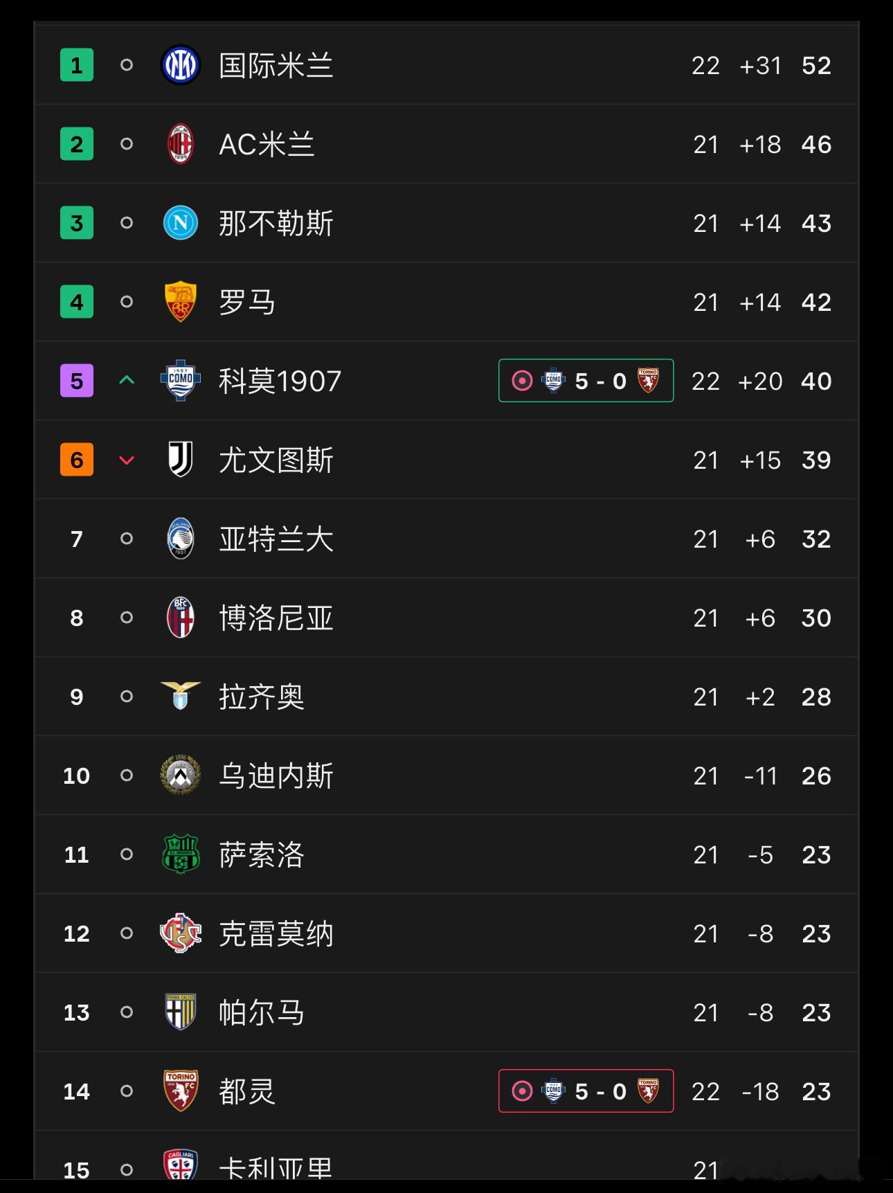 都灵这什么意思?脸都不要了?科莫的实时排名已经反超你妇了,你妇只有欧协联可以踢了