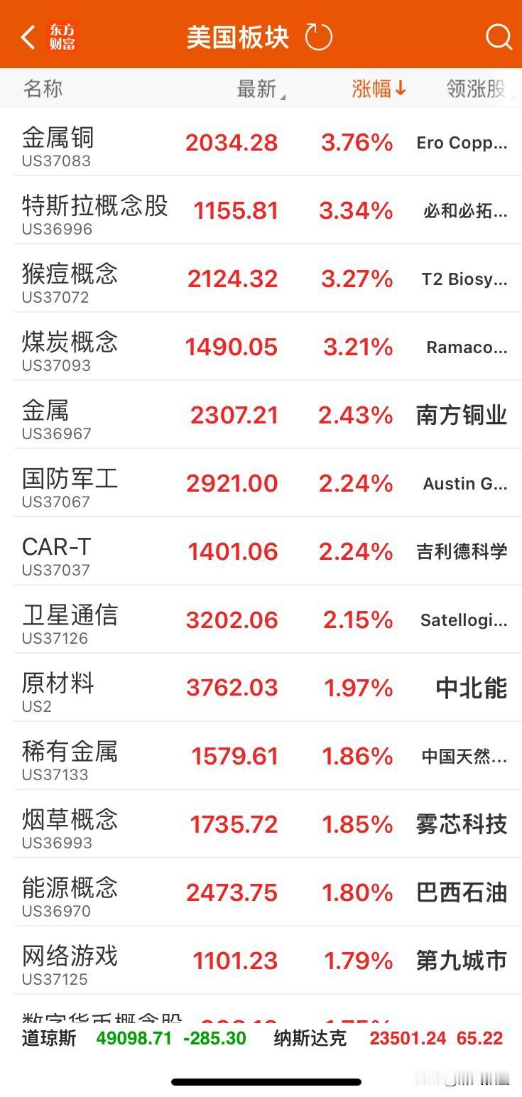 美市场 美→ A近期映射弱,能源金属同上涨,能源(石油)上涨忽略,不具有持续性,外围市场波澜不惊,外围市场情绪没问题看看即可,重心放在大A主线! 美股道指微跌、纳指与标普小幅收涨,金属铜、特斯拉概念、卫星通信领涨。映射A股来看,铜业、新能源产业链、商业航天及卫星通信板块或受带动,军工板块(选加航天)亦存联动机会,可关注相关标的的高开及资金承接力度。