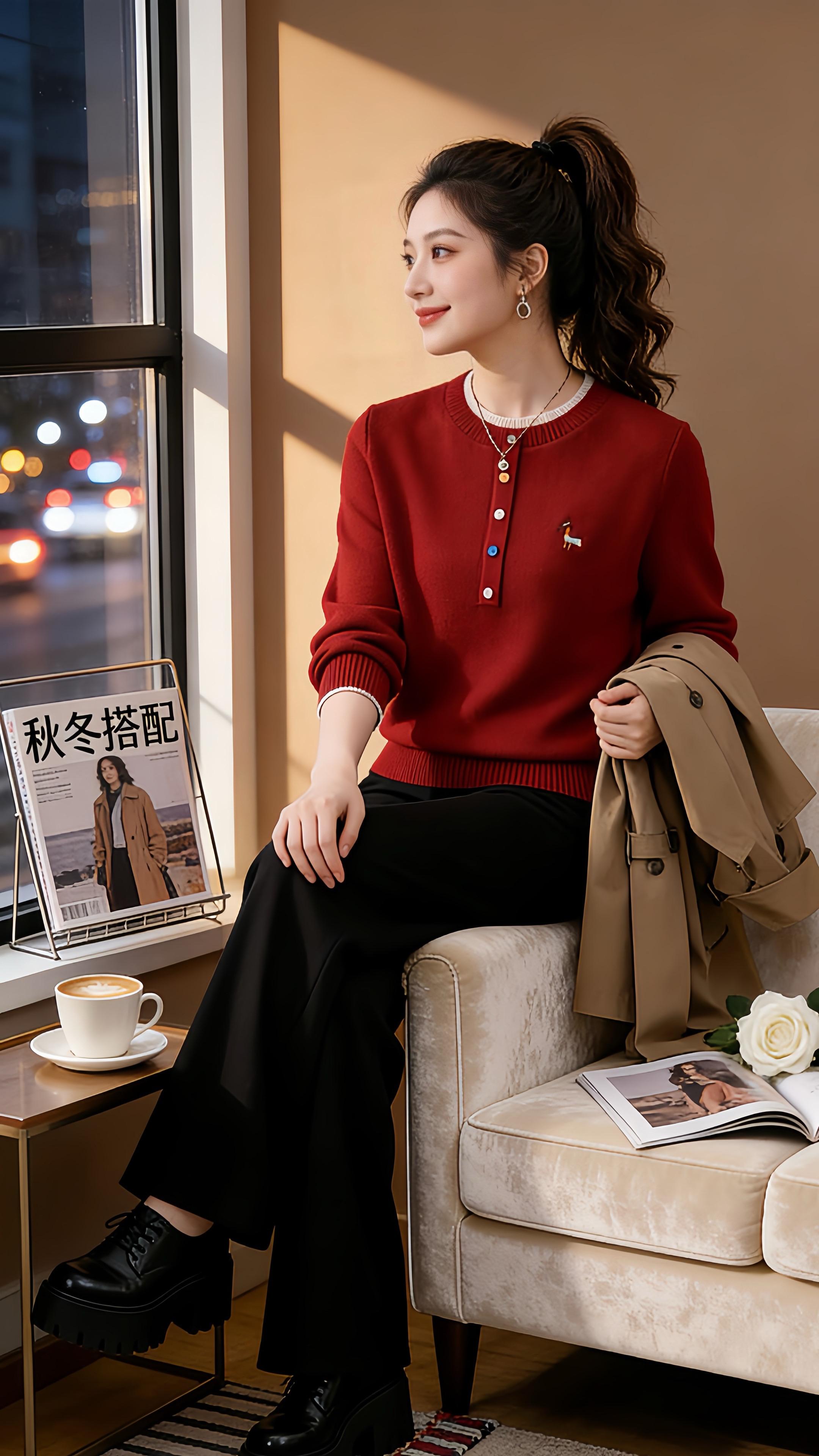 大码穿搭 红色毛衣 过年穿什么新年战袍我先手搓上了针织衫穿搭技巧轻松摆脱路人感