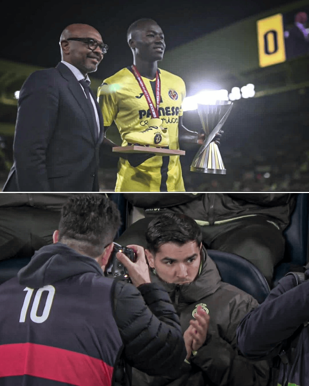 虎扑01月25日讯西甲第21轮比利亚雷亚尔对阵皇马的比赛正在进行中,非洲杯决赛打进制胜球的帕普-盖耶赛前也向黄潜球迷展示了自己的非洲杯决赛全场最佳奖杯。