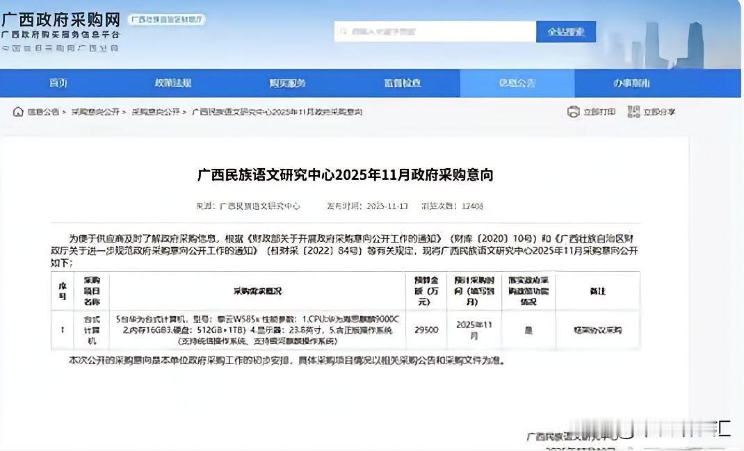 6000万一个的电脑,你见过么?广西,一事业单位采购5台电脑,价格高达2.95亿? 一下子把网友干懵逼了。 还是你们狠啊! 这哪是电脑啊,一台电脑,按老式机算,就算全是金子做的,也卖不出6000万啊! 后来有关单位回应:金额的单位写错了!令网友嗤之以鼻。工作如此的不严谨。还怎么做好人民的公仆,为人民服务,为大局服务。 互联网是有记忆的。这件事情出来以后网友又想到原来75万一个的路由器,就觉得很合理了。 其实官方的回复我认为是正确的,应该是直接套模板式的修改。只修改了一个数字,但是却并没有修改上面的单位。 但是这种行为也是令我们警醒。这是发现了有错误,一个电脑6000万。如果要是没发现呢?那在年末统计的时候是不是就该按2.95亿算年度支出了? 建议这种事情下不为例。5台电脑2.95亿 6个w的电脑 广西电脑采购 广西电脑