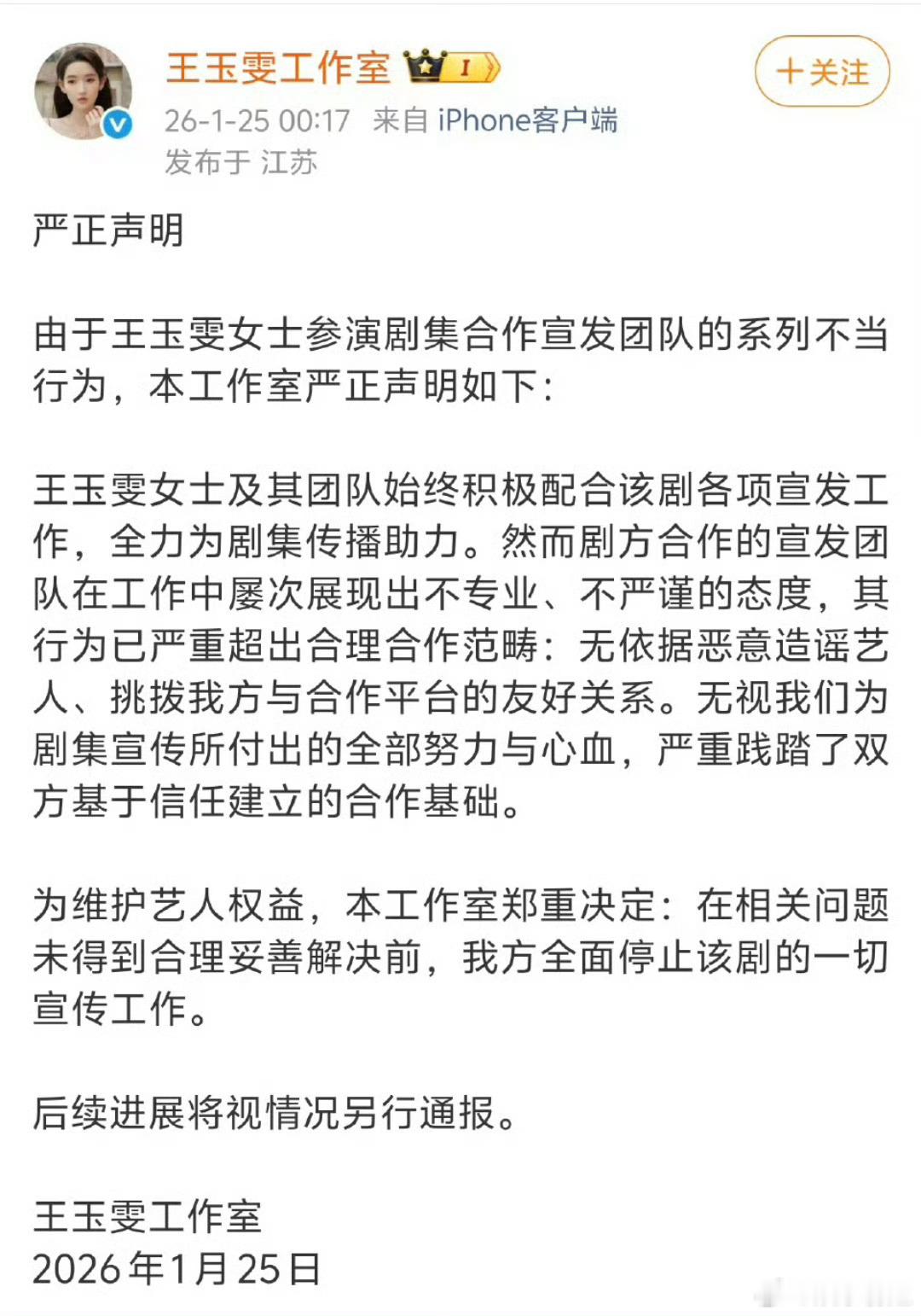 突然的喜欢官微道歉《突然的喜欢》剧组方回应,剧方向王玉雯道歉,对涉事人员作出严肃处理:涉事人员已被开除,宣传团队已停止合作。同时将重新梳理宣发流程,确保后续所有工作严谨合规开展。突然的喜欢2025微博之夜爆款创作大赛