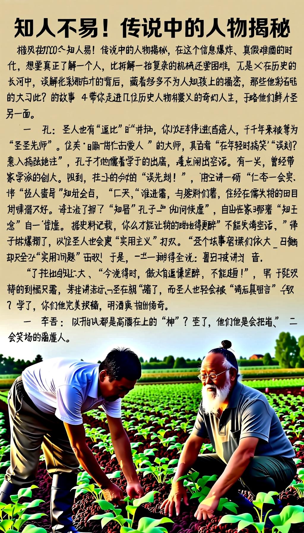 知人不易!——传说中的人物揭秘 在这个信息爆炸、真假难辨的时代,想要真正了解一个人,比拆解一台复杂的机械还要困难。尤其是在历史的长河中,那些光彩夺目的人物背后,藏着多少不为人知的秘密、误解与传奇?今天,我们就来聊聊“知人不易”的故事,带你走进几位历史人物的奇幻人生,领略他们鲜为人知的另一面。 一、孔子:圣人也有“逗比”时 孔子,作为儒家学派的创始人,千百年来被尊为“至圣先师”。然而,谁能想到,这位“仁者爱人”的大师,其实也有“搞笑”时刻?据史料记载,孔子在年轻时曾经“误入歧途”,曾经误会一位学生的善意,差点闹出笑话。 有一次,孔子带着弟子们出游,遇到一位农夫在田间劳作。农夫见孔子气度非凡,便上前请教“如何做人”。孔子正襟危坐,讲了一番“仁爱”的大道理。农夫听完,点点头,说:“老师,我也懂,但我更想知道,怎么才能让我的田地长得更好。”孔子一愣,顿时明白了:自己在讲大道理,农夫却只关心“实用”问题。于是,孔子笑着说:“你说得对,做人要讲实际,不能只讲空话。”弟子们都笑了,原来圣人也会被“实用主义”打败。 这个故事告诉我们,知人不易,甚至圣人也有“普通人”的一面。孔子之所以伟大,不在于他完美无瑕,而在于他懂得谦虚、善于学习。你以为圣人都是高高在上的“神”?错了,他们也是会犯错、会笑场的普通人。 二、李白:诗仙的“酒后真言” 提到李白,大家第一个想到的就是“诗酒趁年华”,豪放不羁、天马行空的诗篇。然而,谁能想到,这位“诗仙”在生活中也有“喝醉”时的糗事?据传,李白曾在一次宴会上喝得酩酊大醉,竟然当众吐槽皇帝“无趣”,差点惹出大祸。 那次宴会,李白饮酒作诗,气氛热烈。酒过三巡,他忽然站起来,扬声说道:“陛下,您这点儿诗,怎能与我那‘将进酒’相提并论?”皇帝听了,差点被“激将法”激怒。幸亏李白的朋友及时拉住他,才没有酿成大祸。 更有趣的是,李白在醉酒后,竟然在皇宫的走廊里写起了诗,结果被人误以为是在“挑衅皇权”。后来,李白被召去“喝茶”,其实是被请去“喝咖啡”,一场误会让他差点“身陷囹圄”。不过,李白的豪放,也正是他魅力的一部分。 这个故事告诉我们,即使是“诗仙”,也有“酒后失言”的时候。知人不易,别以为他们永远都是完美的偶像。其实,普通人也会有“失误”的瞬间,只不过他们的失误,常常被后人放大成“传奇”。 三、曹操:枭雄的“温柔一面” 说到曹操,很多人第一反应是“奸雄”、“枭雄”。的确,他在历史上留下了“挟天子以令诸侯”的形象,但你知道吗?曹操其实也是个“细腻的男人”。 有一次,曹操在战场上大败,心情极为郁闷。回到营中,他没有像传说中那样大发雷霆,而是静静地坐在书房里,写了一首诗,表达自己对失败的感慨。有人说,曹操的诗中透露出一丝“温柔”,这正是他“知人不易”的一面。 更有趣的是,曹操在平日里喜欢和士兵们开玩笑。有一次,他在军营里扮成普通士兵,偷偷观察士兵们的生活。结果被士兵认出,纷纷笑着喊:“将军!我们认得你!”曹操笑着说:“你们都知道我?那我就不装了。”这份平易近人的一面,让人觉得,这位“奸雄”其实也是个“暖男”。 这个故事告诉我们,伟人也有“柔情似水”的一面。知人不易,不仅要看他们的“光鲜亮丽”,更要理解他们的“细腻温情”。 四、结语:真正的“知人”之道 从孔子到李白,从曹操到现代的明星名人,所有的人都不是完美的“神”。他们的光环背后,藏着无数的笑料、失误和温情。正如一句古话所说:“人非圣贤,孰能无过。”我们要学会用一颗包容的心去“知人”,去理解每个人的不同面。