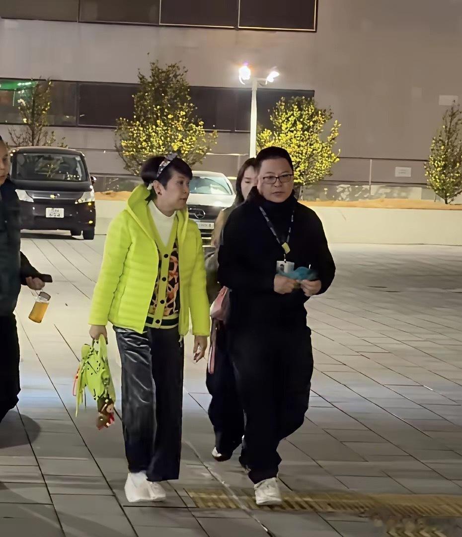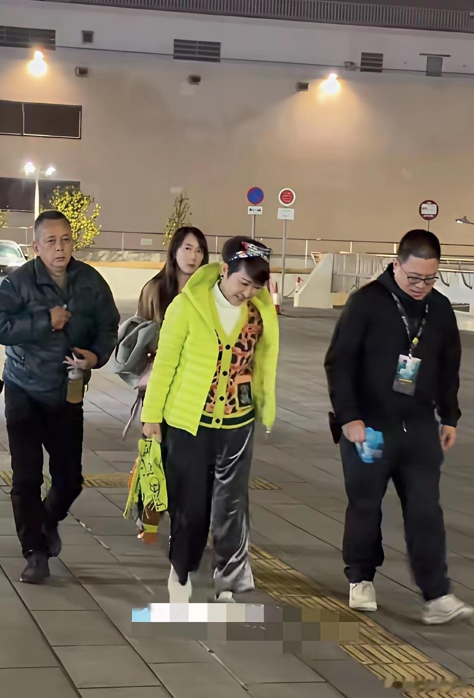张学友香港演唱会上偶遇谢霆锋妈妈拉姑,74岁的人像50。头戴发箍,身穿荧光绿羽绒服,手拿绿色手袋打扮相当时尚拉风。