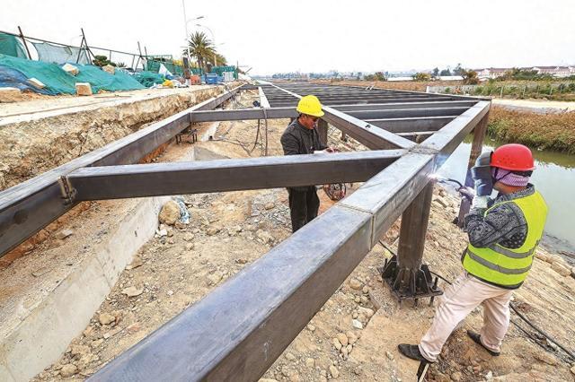 1月22日,记者在石狮锦江外线湿地公园段看到,作为“石狮市一县一溪一特色”乡村振兴精准提升(一期)项目——蚶江沟基础设施与生态整治建设项目的关键节点,两个“景观平台”建设现场一片繁忙。据了解,该项目包括渠道两侧生态整治、基础设施改造,将新增服务驿站、景观平台、非机动车位、蚶江沟护坡彩绘、沿机耕道休憩平台、景观打卡小品等。该工程建成后,将显著提升锦江外线湿地公园段的旅游服务承载力与游客体验感。(记者颜华杰)