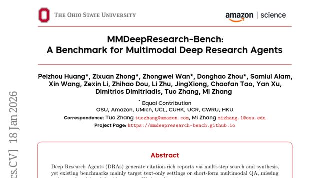 这项由俄亥俄州立大学、亚马逊、密歇根大学、伦敦大学学院等多所知名机构联合完成的研究,于2026年1月发表在arXiv预印本平台,论文编号为arXiv:2601.12346v1。研究团队首次构建了一个专门评估多模态深度研究代理(DeepResearchAgents,简称DRA)的综合性基准测试平台——MMDeepResearch-Bench,简称MMDR-Bench。