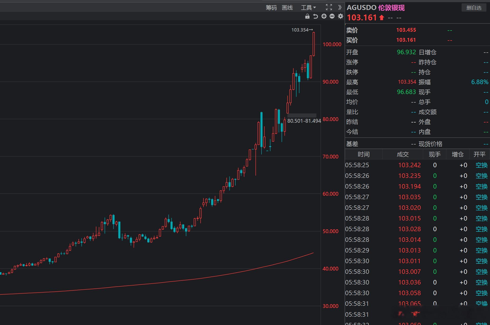 伦敦银现货、沪银主力合约(期货)