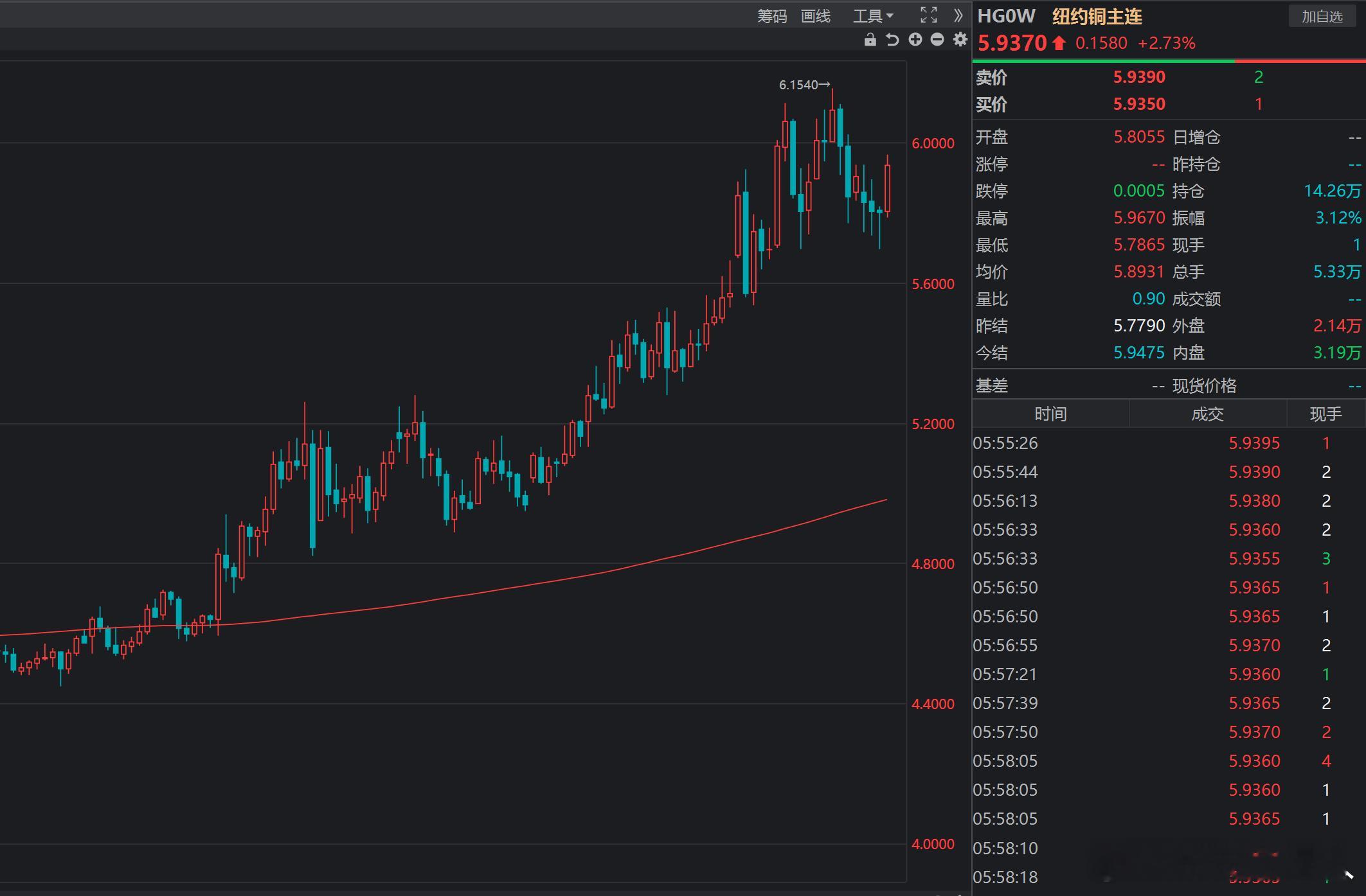 纽约铜和纽约铝主力合约