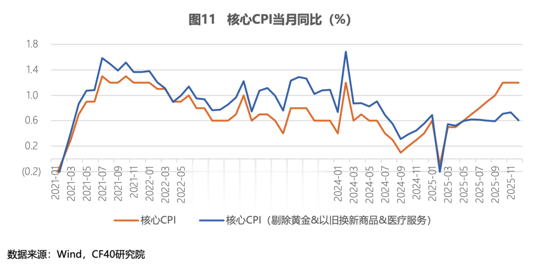 价格方面,CPI与PPI同比增速依然偏低,但趋势有所改善。核心CPI同比自2024年9月以来持续上行,CPI同比增速在2025下半年开始回升,这主要与消费政策的实施有关。剔除黄金价格上涨、以旧换新政策、医保支付改革等因素影响后,CPI与核心CPI同比基本企稳。在“反内卷”政策的推动下,PPI同比增速也在2025年下半年以来有所改善。整体而言,中国依然面临低通胀压力,价格水平的进一步修复依赖于积极有为的宏观政策。