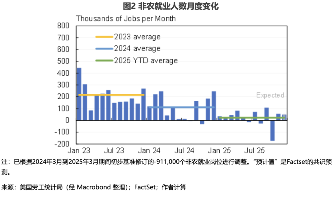 认为美国经济表现不佳的解读主要是基于就业情况。平均每月新增非农就业岗位从2023年的21.6万个降低至2024年的16.8万个,2025年进一步降低至4.9万个。宣布的修订计划表明,2024年和2025年的数据将被下修(图2显示了修订后数据的情况)。