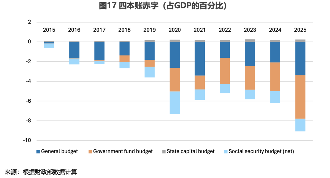 短期内,中国2026年的经济轨迹将取决于财政支持的规模、构成和时机。尽管近年来公共赤字和债务有所上升(见图17),但中国的整体公共资产负债表仍具韧性,若条件需要,仍然可以提供额外支持。限制性因素不在于财政空间本身,而在于有效执行。