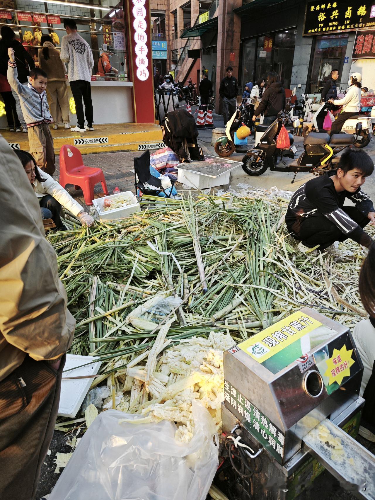 广西“甘蔗小王子”日入5000! 这条街最靓的仔,靠一根甘蔗逆袭了 傍晚的烟火气里,这条街最热闹的摊位,当属广西来的“甘蔗小王子”。 眼前这堆比人还高的甘蔗渣,就是他一天战绩的勋章。从早上出摊到现在,机器就没停过,现榨的甘蔗汁甜得街坊邻居排着队等,有人甚至特意骑20分钟电动车过来买。 我跟他聊了两句,才知道他一天能卖400根甘蔗,纯利润直奔3000块!当我们还在为月薪破万发愁时,他靠一根甘蔗实现了“日入半万”的小目标。 有人说他只是赶上了好生意,可谁能扛得住从早站到晚、手被甘蔗汁泡得起皱的辛苦?这哪是什么“躺赚”,分明是用体力和甜份堆出来的底气。 现在年轻人总喊“工作难找”,可这条街上的烟火气告诉我们:真正的机会,从来都藏在接地气的小事里。你愿意放下身段,去做这种“不起眼”的小生意吗?