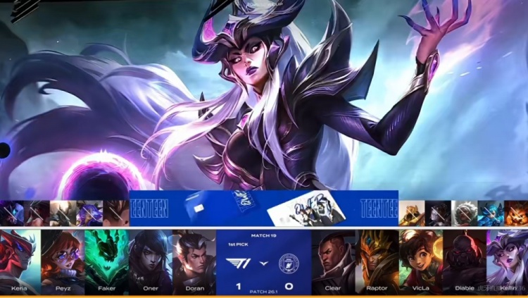 T1:上单Doran、打野Oner、中单Faker、下路Peyz、辅助Keria