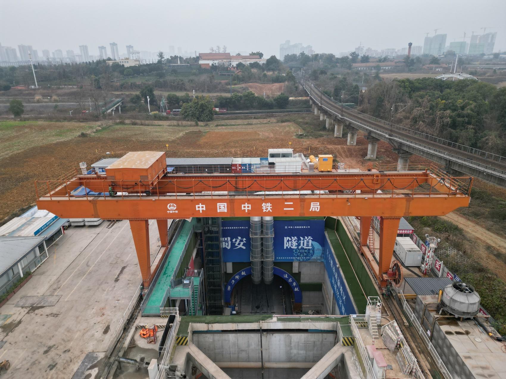 蜀安隧道全长10380米,采用“盾构法+明挖法”施工,其中盾构段长达9824米,是目前国内掘进距离最长、直径最大的土压平衡盾构隧道。为加快盾构段施工进度,由两台盾构机共同掘进,分别是“蜀安号”和“成渝号”,各掘进约5.3公里和约4.5公里。