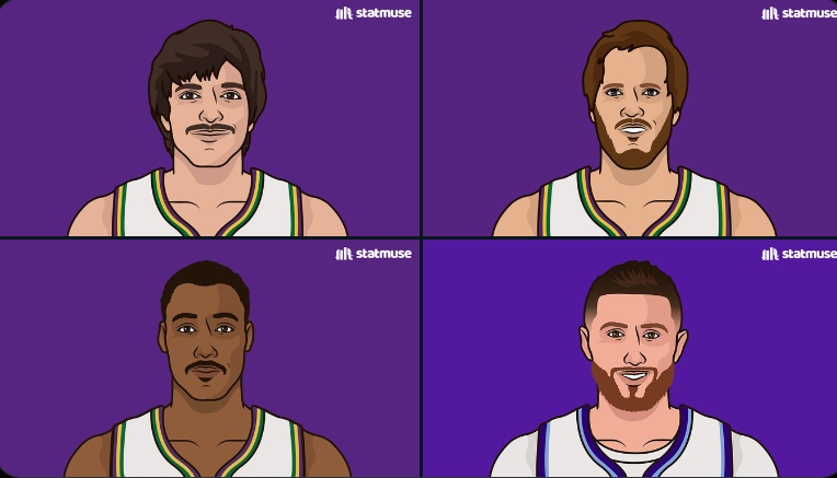 根据数据统计,犹他爵士队史三双榜: