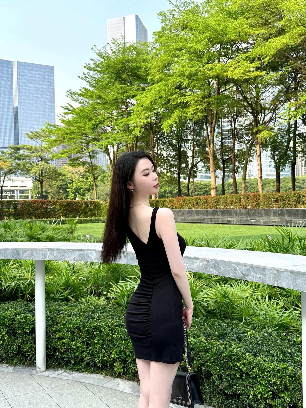 绿树阴中倚栏杆,轻纱薄雾绕芳园。