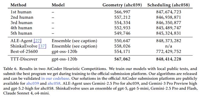 在著名的AtCoder启发式竞赛(ahc039,ahc058)中,它不仅击败了之前最强的AI智能体,还超越了人类金牌选手的历史最佳成绩。