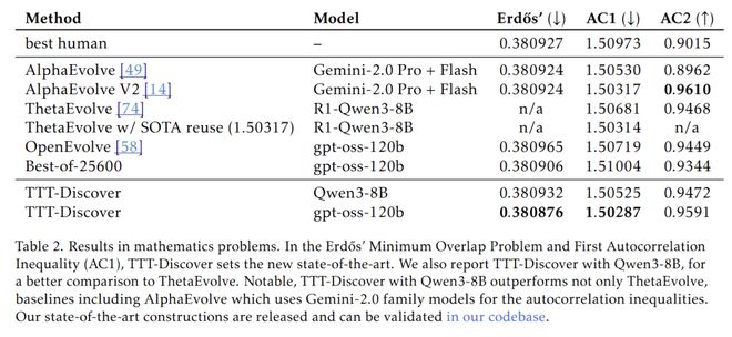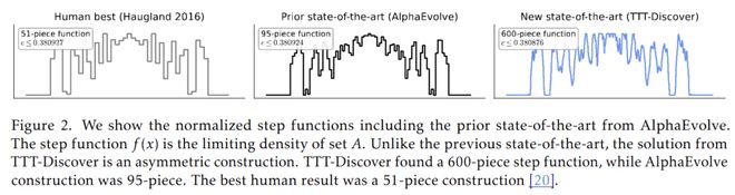 在著名的Erdős最小重叠问题(一个困扰数学家数十年的数论难题)上,人类和此前最强AI(AlphaEvolve)的竞争已经卷到了小数点后几位。TTT-Discover进场后,直接把上界从0.380924压低到了0.380876。