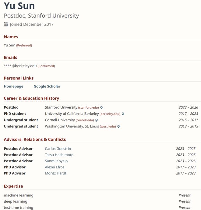 本文通讯作者YuSun,是「Test-TimeTraining(TTT)」这一概念的坚定布道者和「总设计师」,目前是斯坦福大学博士后,同时也是英伟达的研究员。