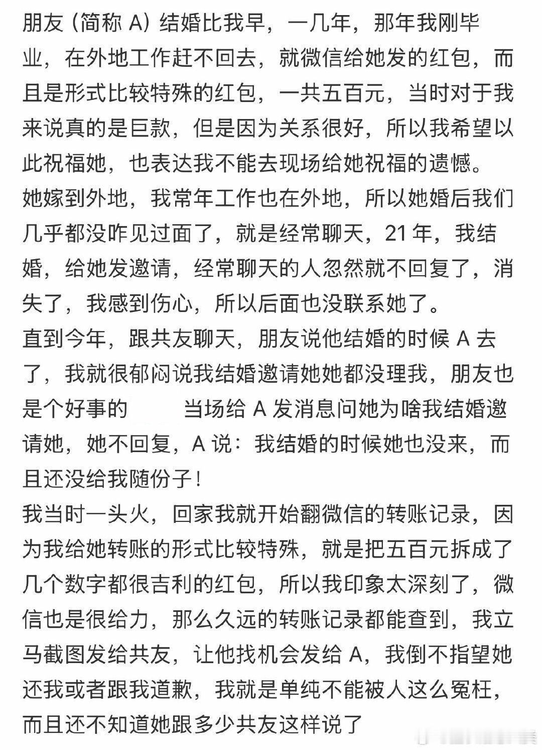 结婚的时候发小没随礼