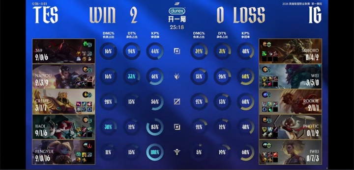 直播吧1月25日讯LPL第一赛段组内赛登峰组第二轮iG不敌TES,Rookie整场比赛表现欠佳,总战绩仅3-5-2。