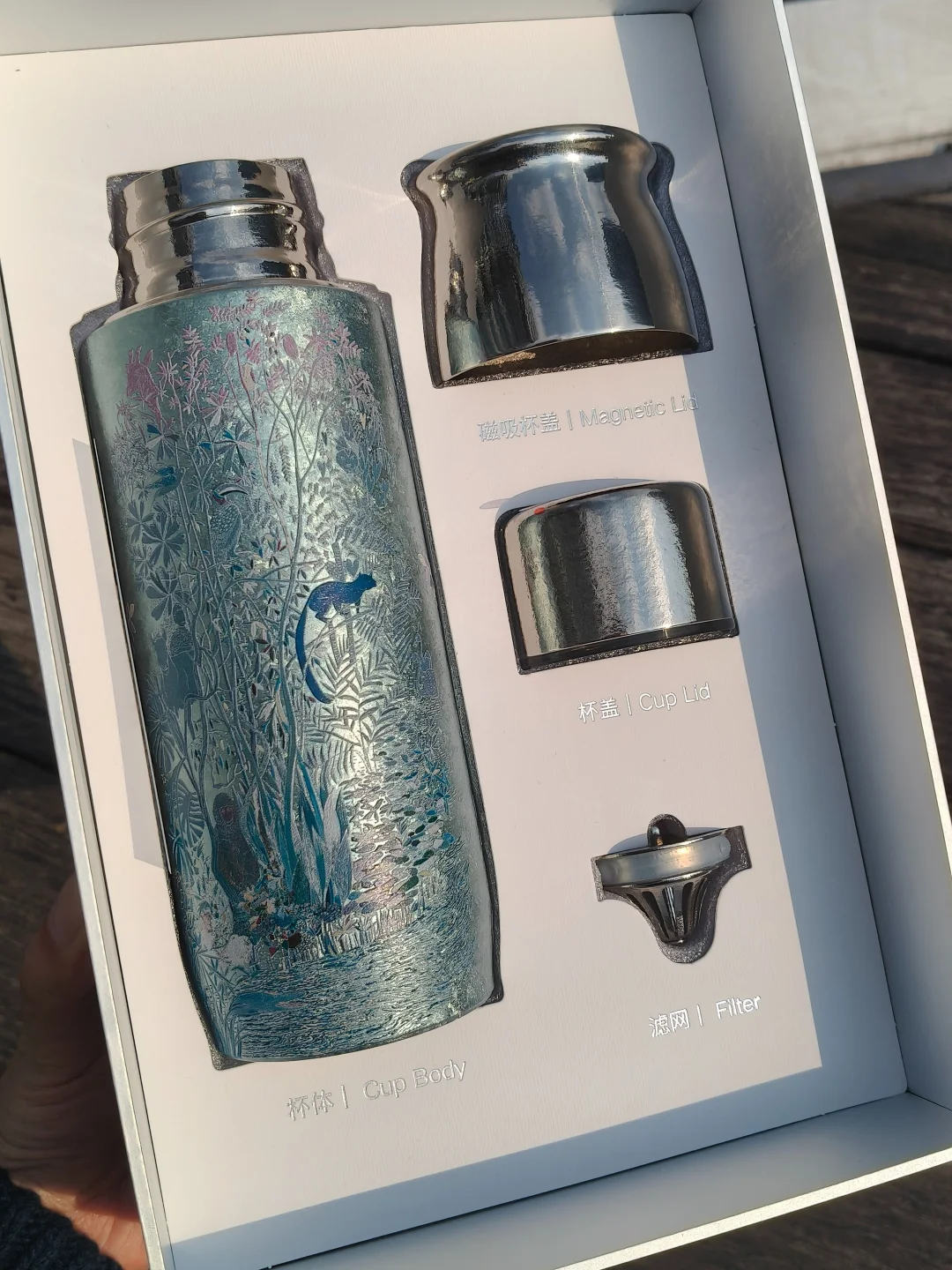 被飞剑390ml闷茶杯的礼盒和实力双重圈粉!包装精致有质感,自用都能提升幸福感。 390ml大容量太适合爱喝茶的宝子,闷泡时间够,茶叶香气完全释放,回甘超浓郁。 99.6%高纯度纯钛材质,天然抑菌耐酸碱腐蚀,不会生锈,也不会析出有害物质,健康饮水首选。 历经145道工序+1000°C高温处理,荣获国家级技术发明奖,杯身再生保护膜锁住新鲜。 无油漆无涂层,冰川蓝颜值抗打,不褪色不变色,礼盒包装送礼也超有面!
